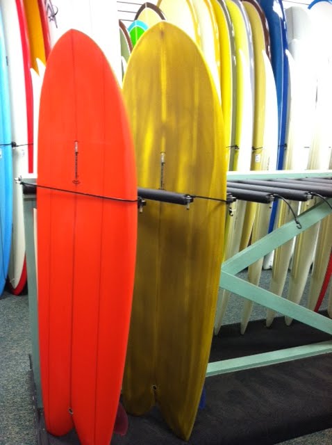 Just got word from the headquarters down in La Jolla that the kooky folks dropped off some McCallum twin pins, diamond tail quads, and some fishysisis...The colors on these are looking purdy unique. Any questions or concerns give the folks down in La Jolla a call and they can surely provide some educated answers. Or email em' at mitchlj@gmail.com